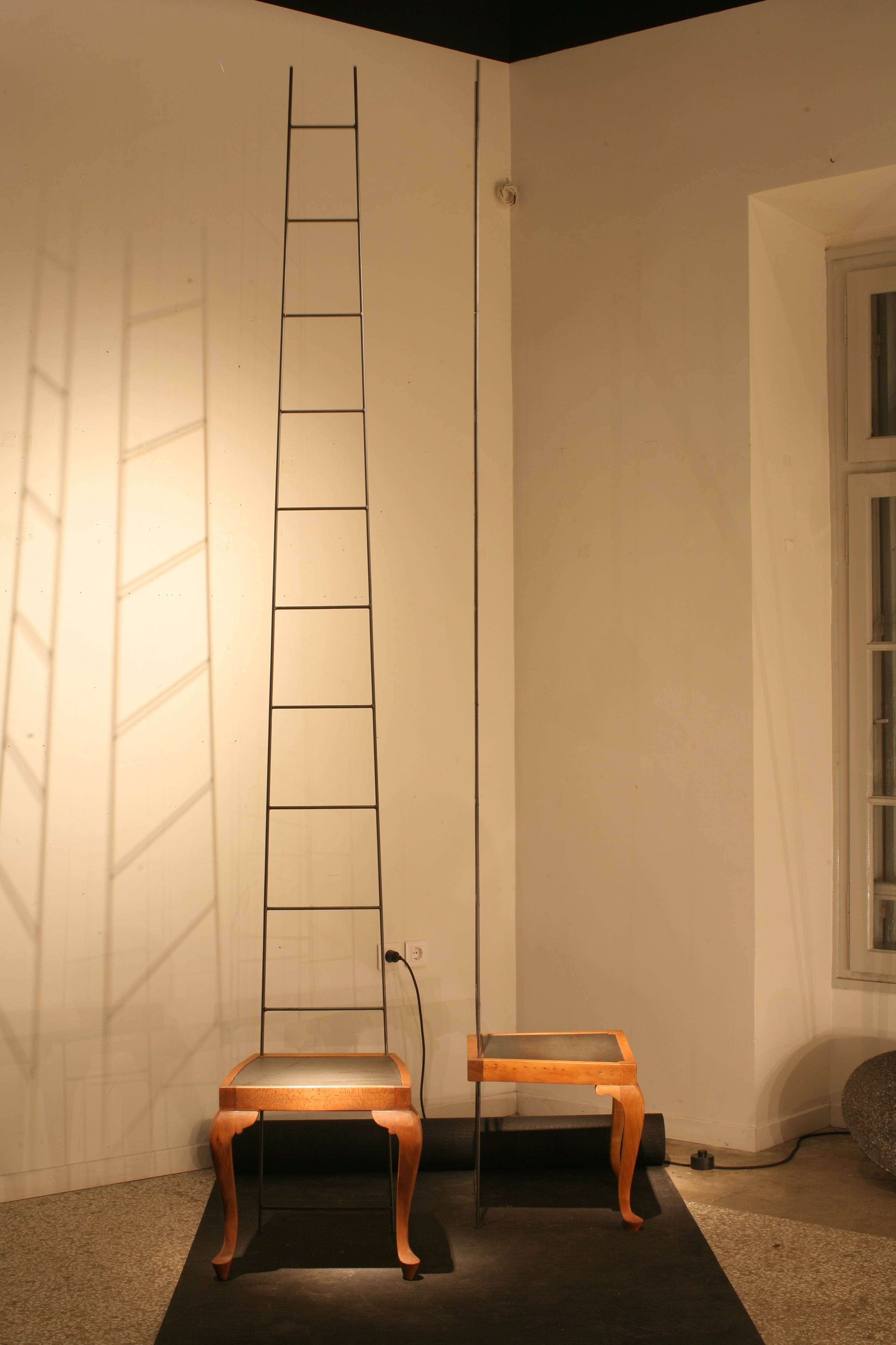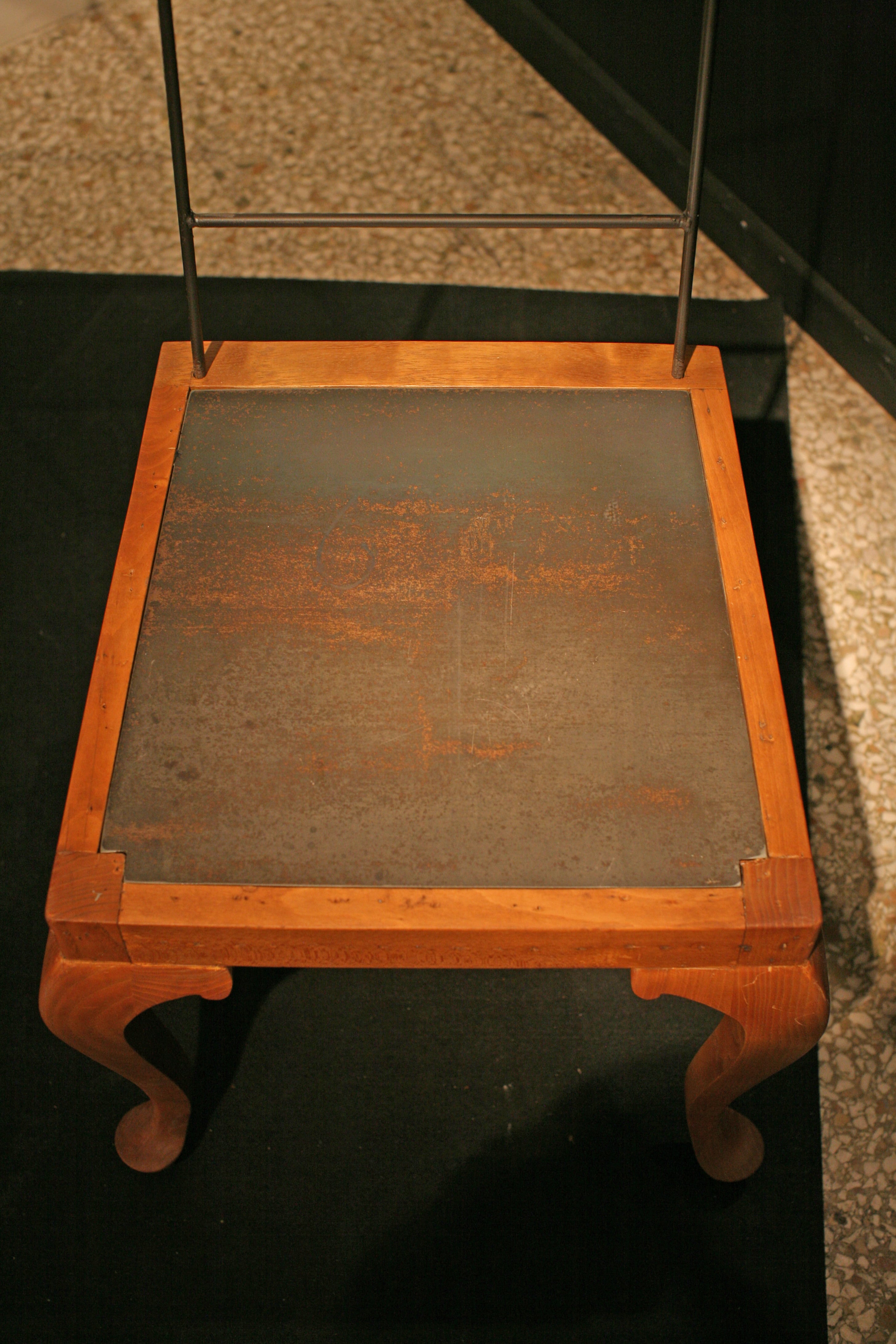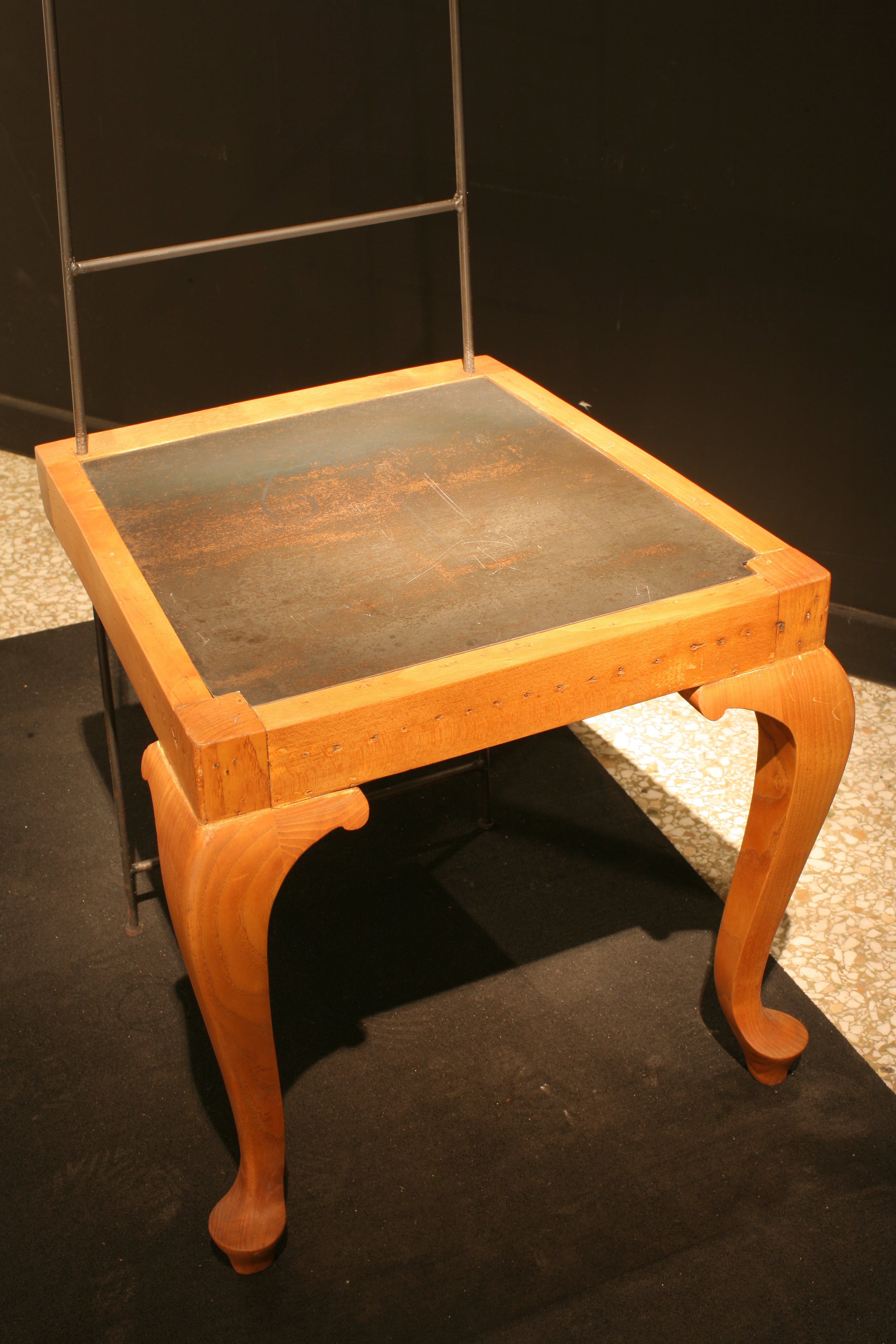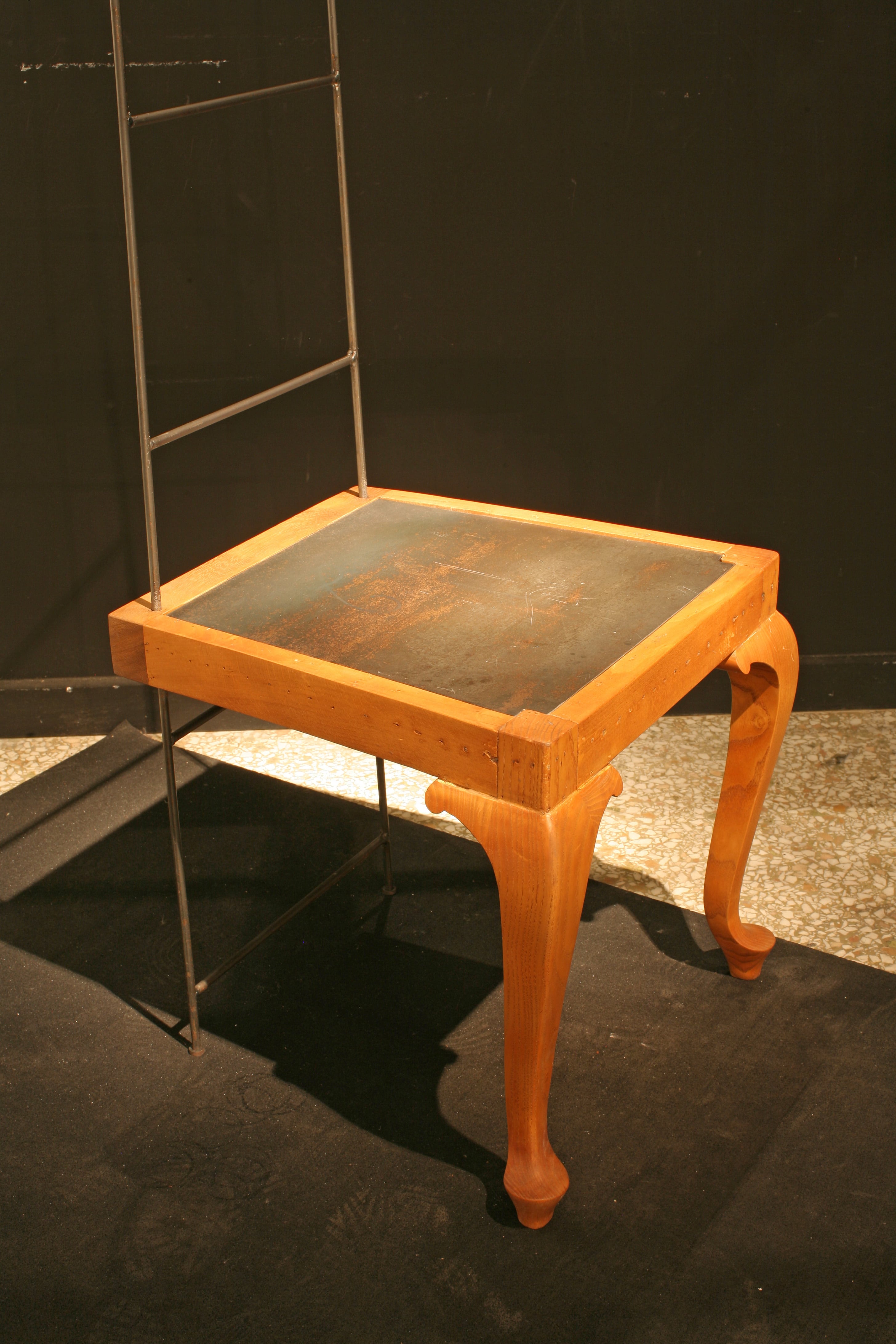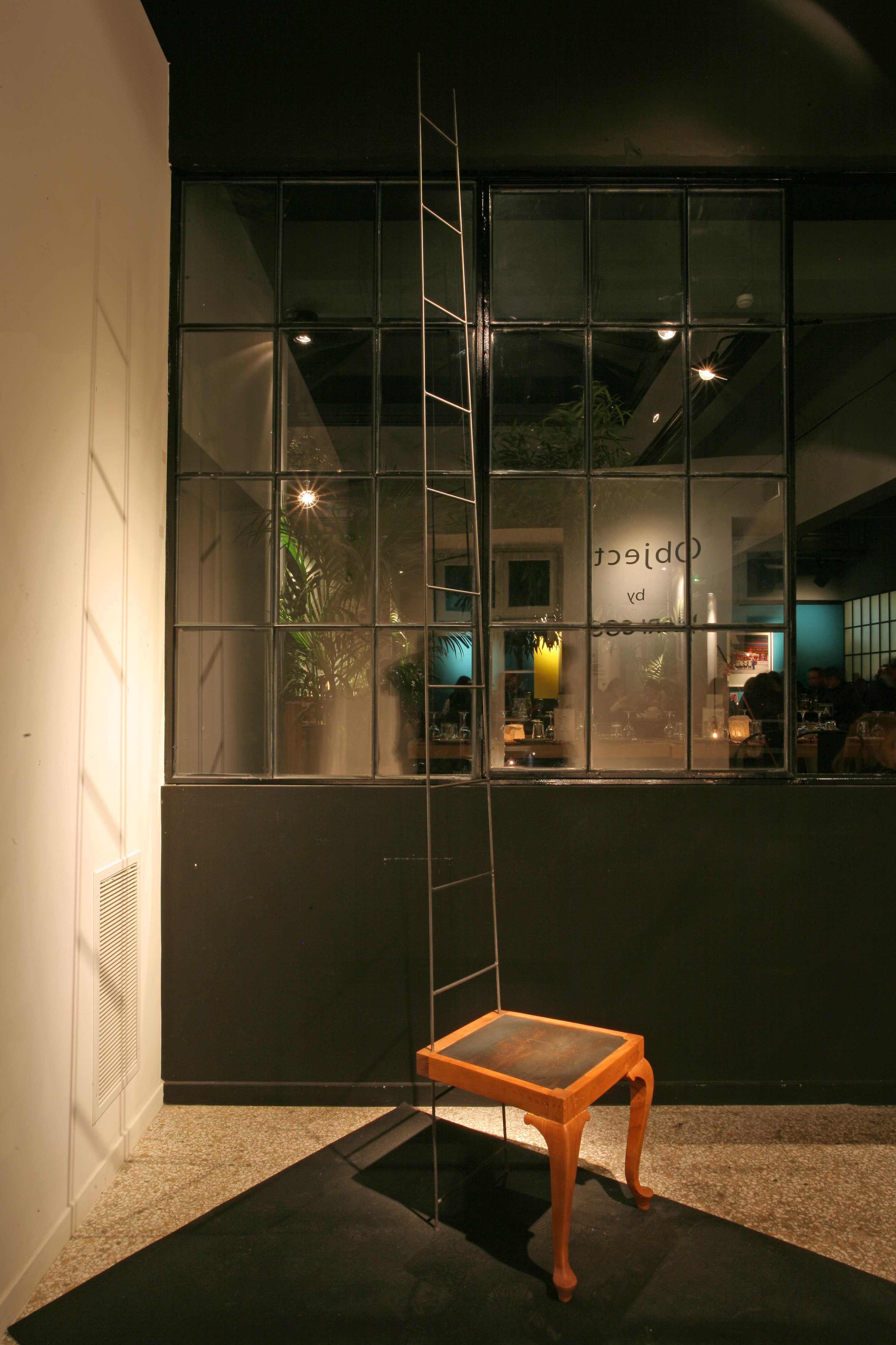 Τα μπροστινά πόδια της παλαιάς καρέκλας, σαν πόδια αλόγου, την πηγαίνουν ένα βήμα μπροστά. Ο Δον Κιχώτης, ένα αυτοσχέδιο σύνολο αντικείμενων, συντέθηκε ως όχημα για ένα ταξίδι ανάμεσα στη φαντασία και τη λειτουργικότητα.